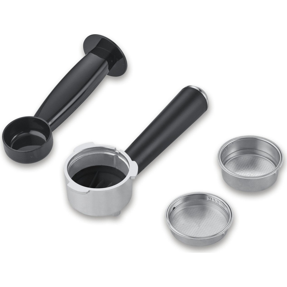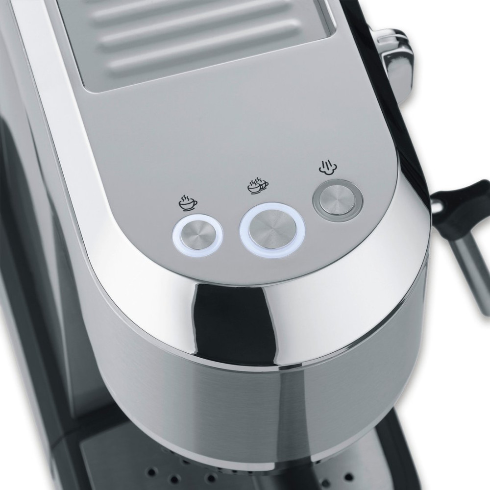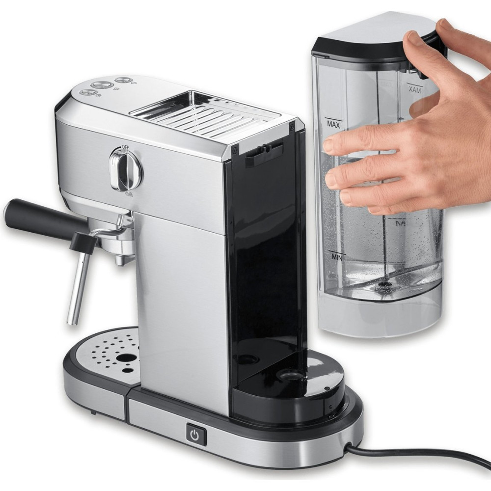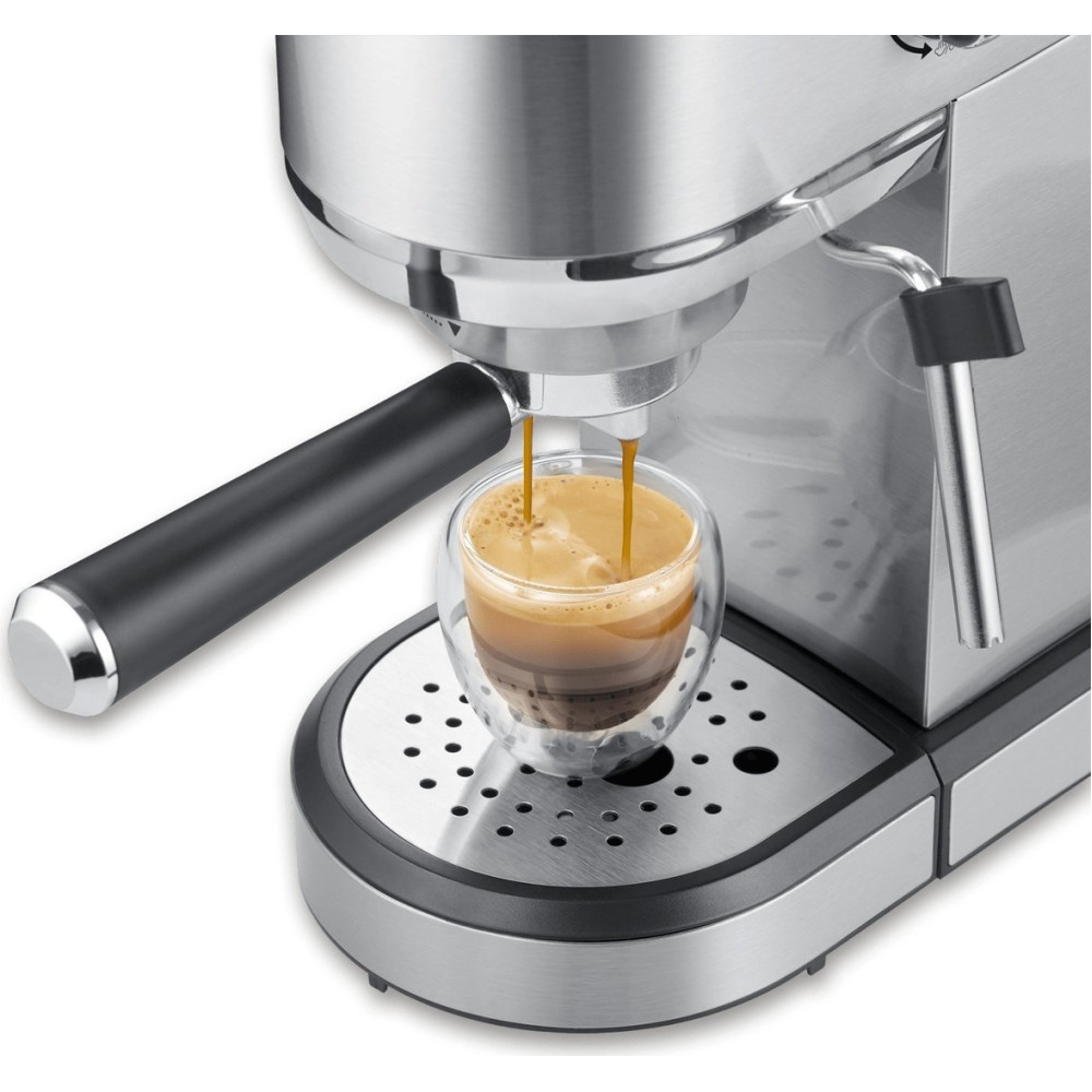 1350 Вт, корпус металл/пластик, капучинатор ручной, используемый кофе: молотый, цвет серебристый