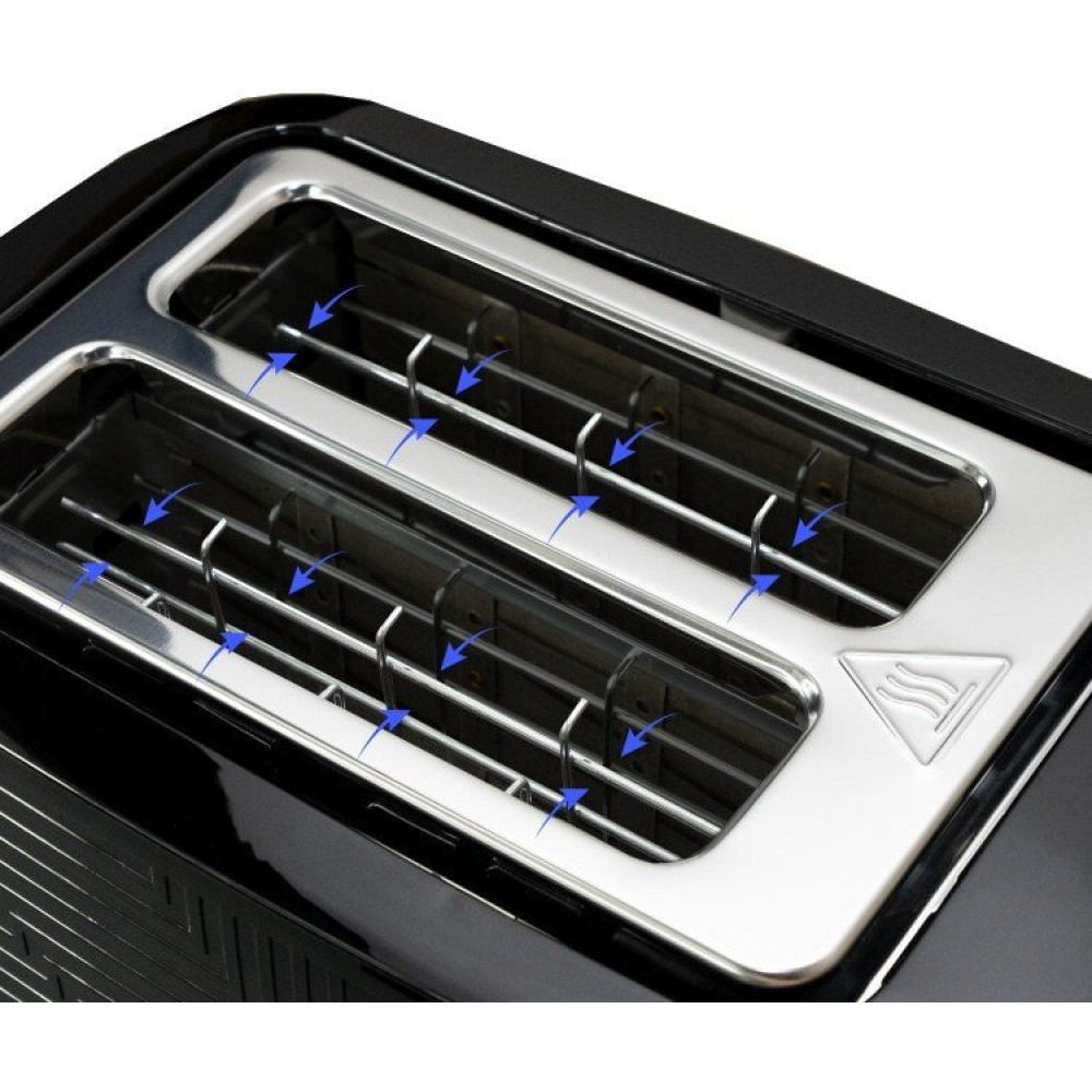850 Вт, количество тостов: 2, корпус: металл, решетка для подогрева булочек, цвет черный