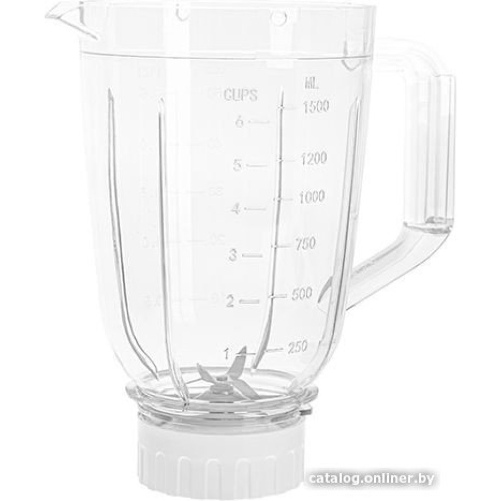 - Комплектация Легкий кувшин из AS-пластика – не содержит BPA. Нож из нержавеющей стали с четырьмя лезвиями. Крышка со съемным мерным стаканчиком. Пластиковый мерный стаканчик максимальной емкостью 64 мл.