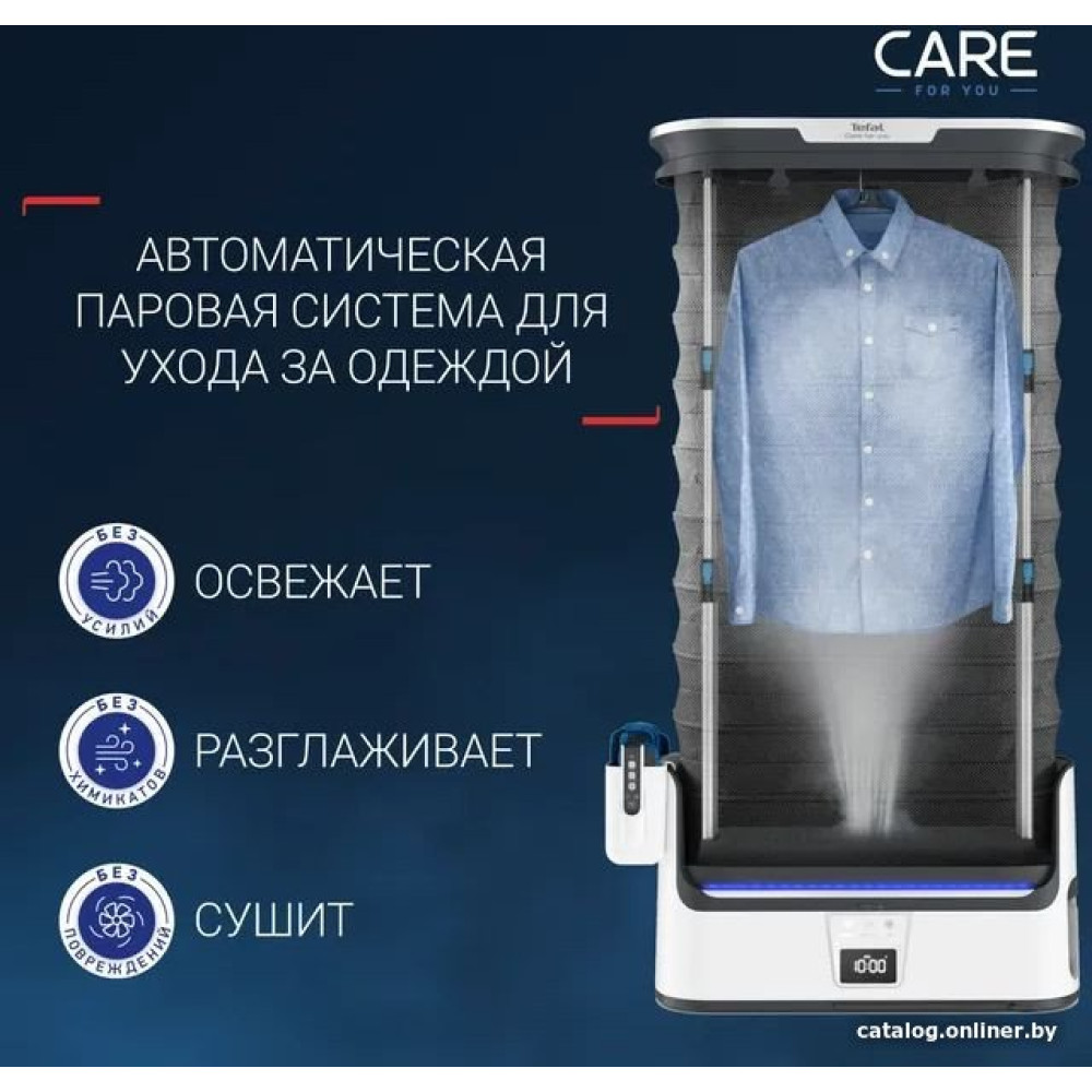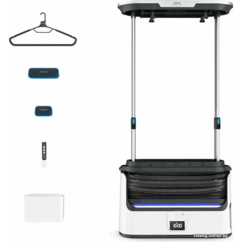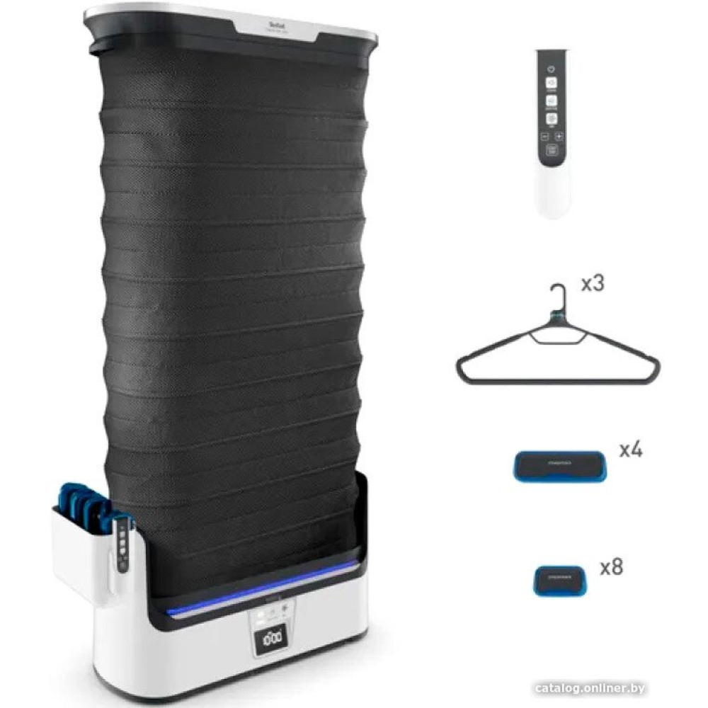 - Дополнительные насадки и приспособления Утяжелители 12 в комплекте Специальная форма способствует наиболее эффективному выпрямлению, а прорезиненные края обеспечивают идеальное сцепление с любой тканью. Также при необходимости с их помощью вы можете создать стрелки на брюках. Вешалки 3 в комплекте Вращающиеся на 360° вешалки для удобного размещения одежды. Прорезиненные плечики позволят надежно зафиксировать даже тонкие бретельки, а специальные отверстия обеспечат правильную циркуляцию пара. Пульт дистанционного управления Легкий эргономичный пульт с интуитивно понятным выбором режимов. Контейнер для хранения Утяжелители и пульт не потеряются благодаря удобному хранению в специальном контейнере.