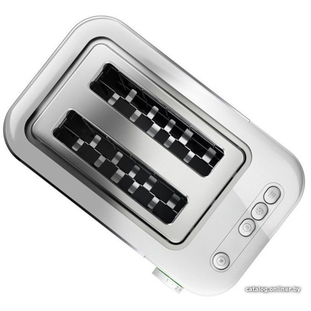1000 Вт, количество тостов: 2, корпус: пластик/металл, решетка для подогрева булочек, 13 степеней обжаривания, цвет белый/нержавеющая сталь