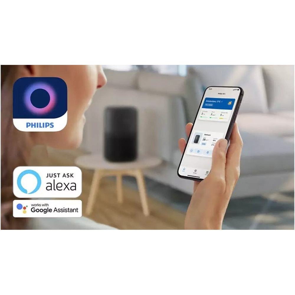 очиститель, 3-ступ. фильтр, для помещения до 65 м², Amazon Alexa/Google Home/фирменное приложение, шум 20.5 дБ, питание: сеть, цвет темно-серый