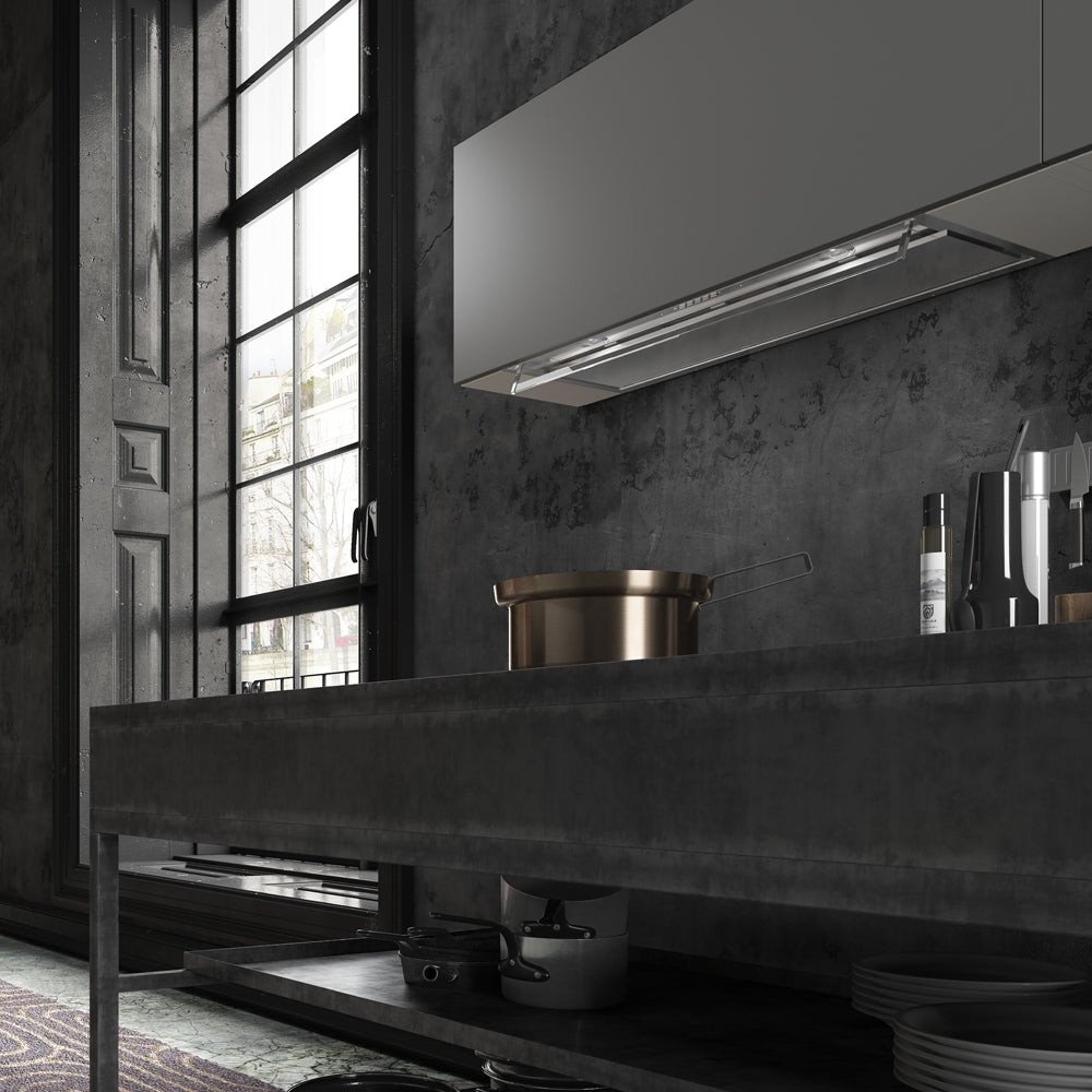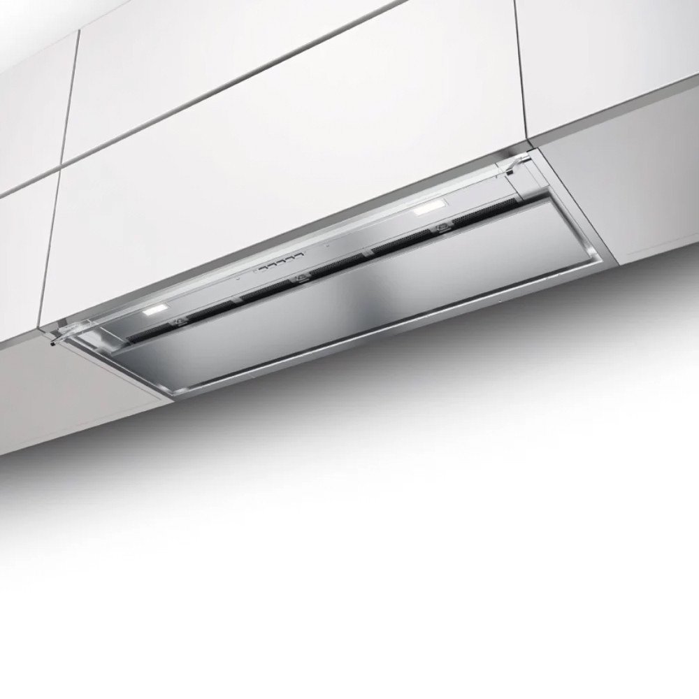 конструкция скрытая, монтаж для встраивания, ширина 89.8 см, управление электронное/кнопочное, производительность вытяжки 570 м³/ч, цвет нержавеющая сталь