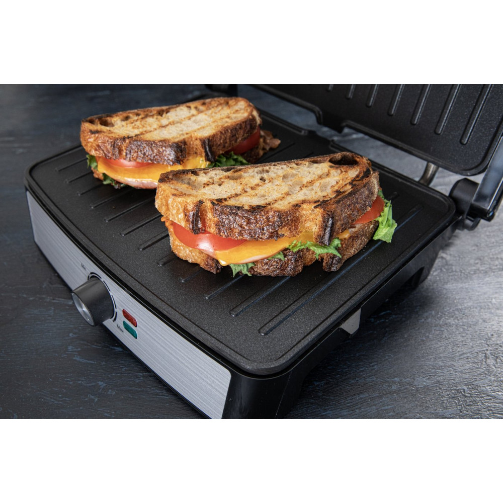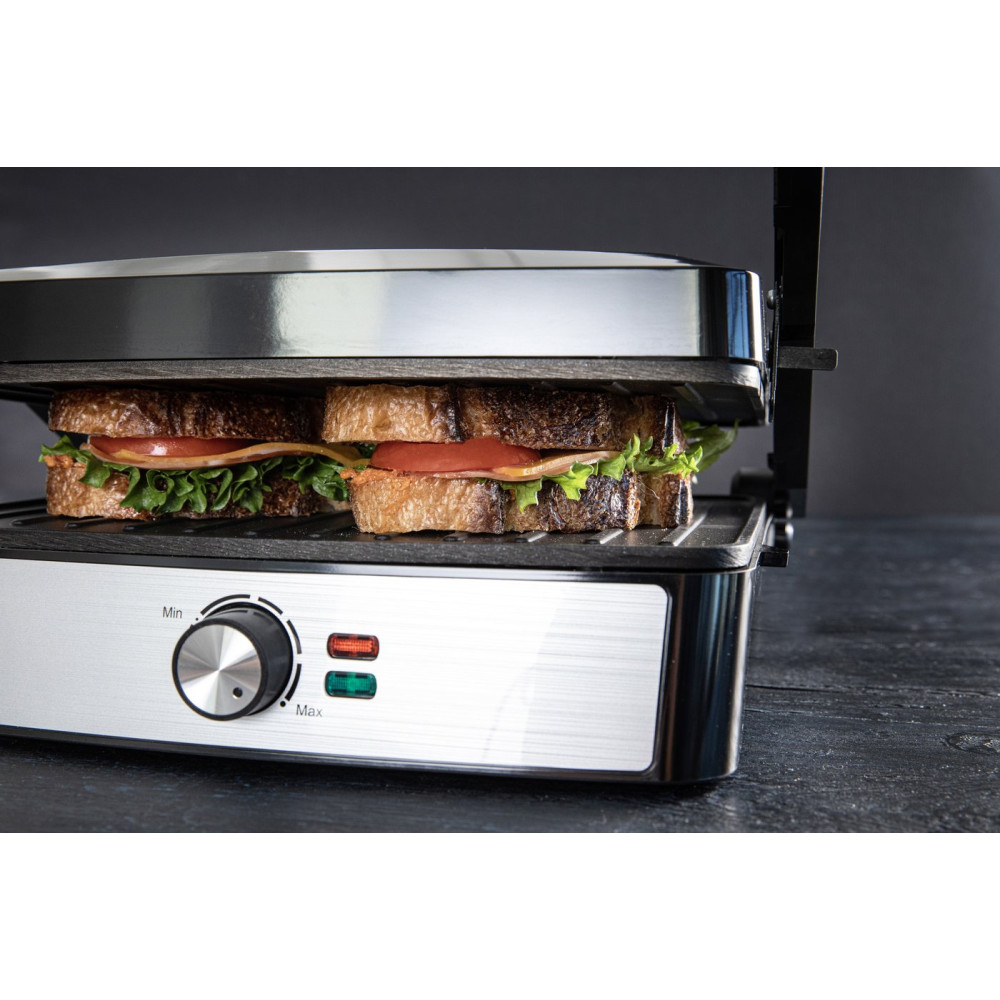 2200 Вт, универсальный, двухсторонний (гриль-пресс), габариты 328x323 мм, рабочая поверхность 290x230 мм