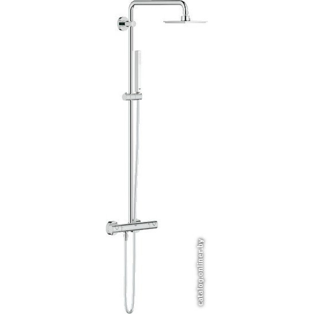 душевая система (с верхним душем), настенный монтаж, термостатический смеситель, верхний душ 152 мм, ручной душ