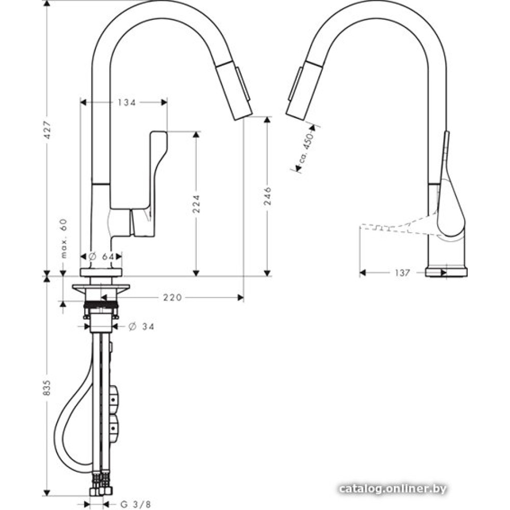 - Выдвижной/гибкий изливДа