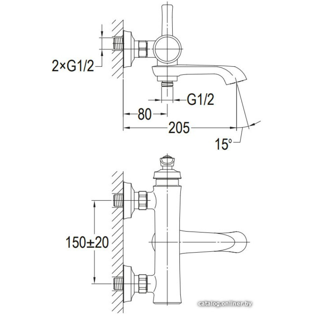 однорычажный смеситель для ванны и душа, монтаж на стену
