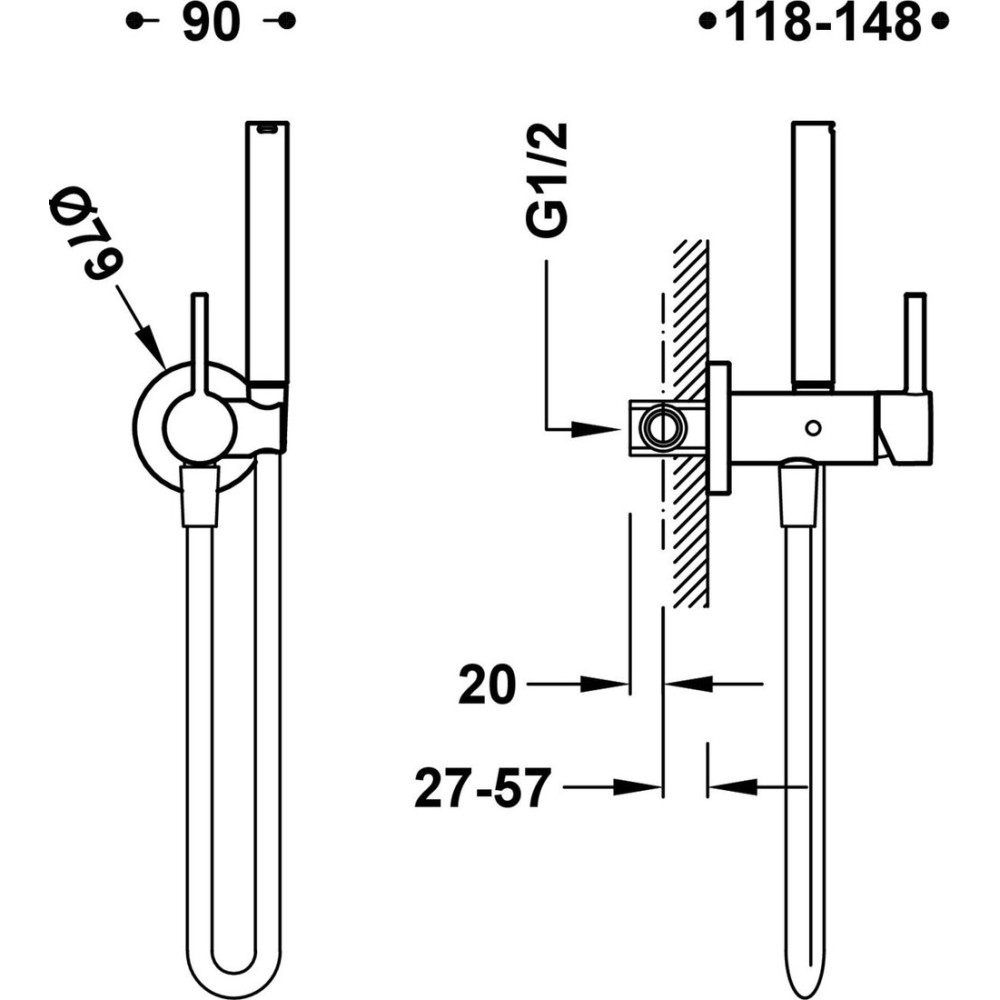 гигиенический душ, настенный монтаж, механический смеситель