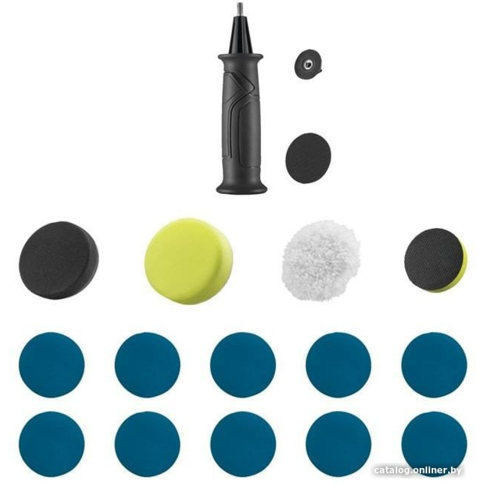 • Комплект поставки - полировальная подошва, - шерстяная насадка, - черная вспененная полировальная пасадка, - шлифовальная подошва, - 10 шлифдисков (2 х 400G, 2 x 800G, 2 x 1500G, 2 x 2000G)