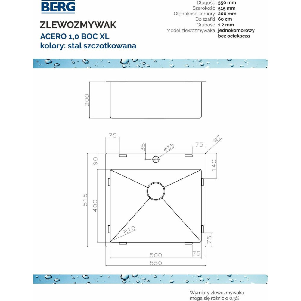 Кухонная мойка Berg Acero stal AceroXL