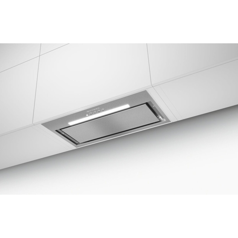 конструкция скрытая, монтаж для встраивания, ширина 52 см, управление механическое/кнопочное, производительность вытяжки 540 м³/ч, цвет нержавеющая сталь