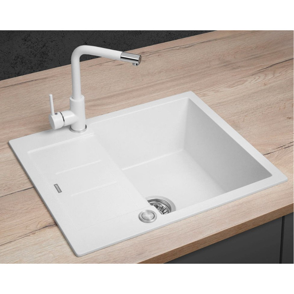 врезная на столешницу, искусственный камень, размеры: 62x50 см, глубина чаши: 20 см, в шкаф шириной от 45 см, клапан-автомат