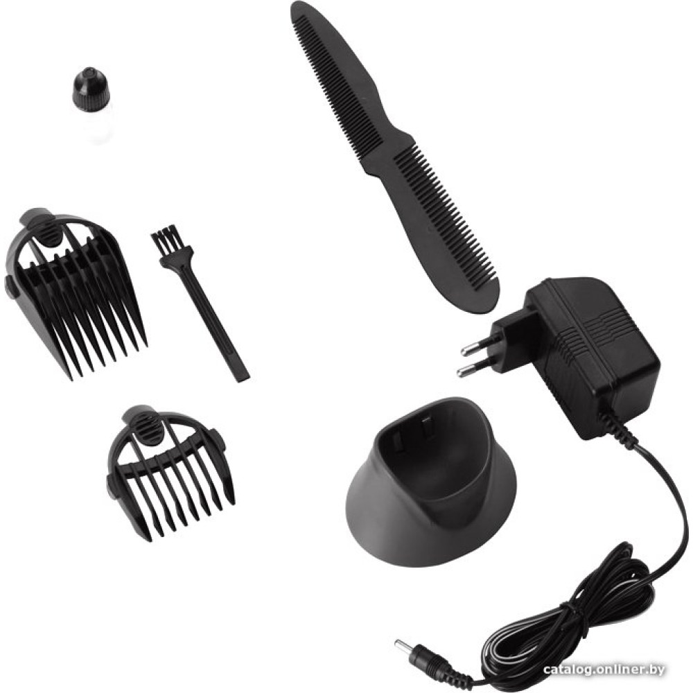 - В комплектеблок питания, зарядная база, масло, расческа, щеточка для чистки