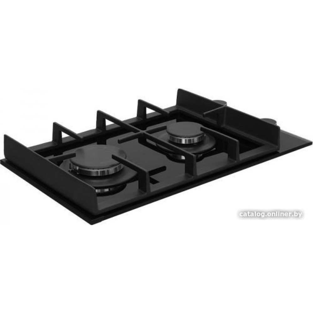 газовая на 2 конфорки, закаленное стекло, мощность: 4200 Вт, автоматический электроподжиг, газ-контроль, решетки: чугун, независимая установка, размеры (ШхГ): 29.7x51 см