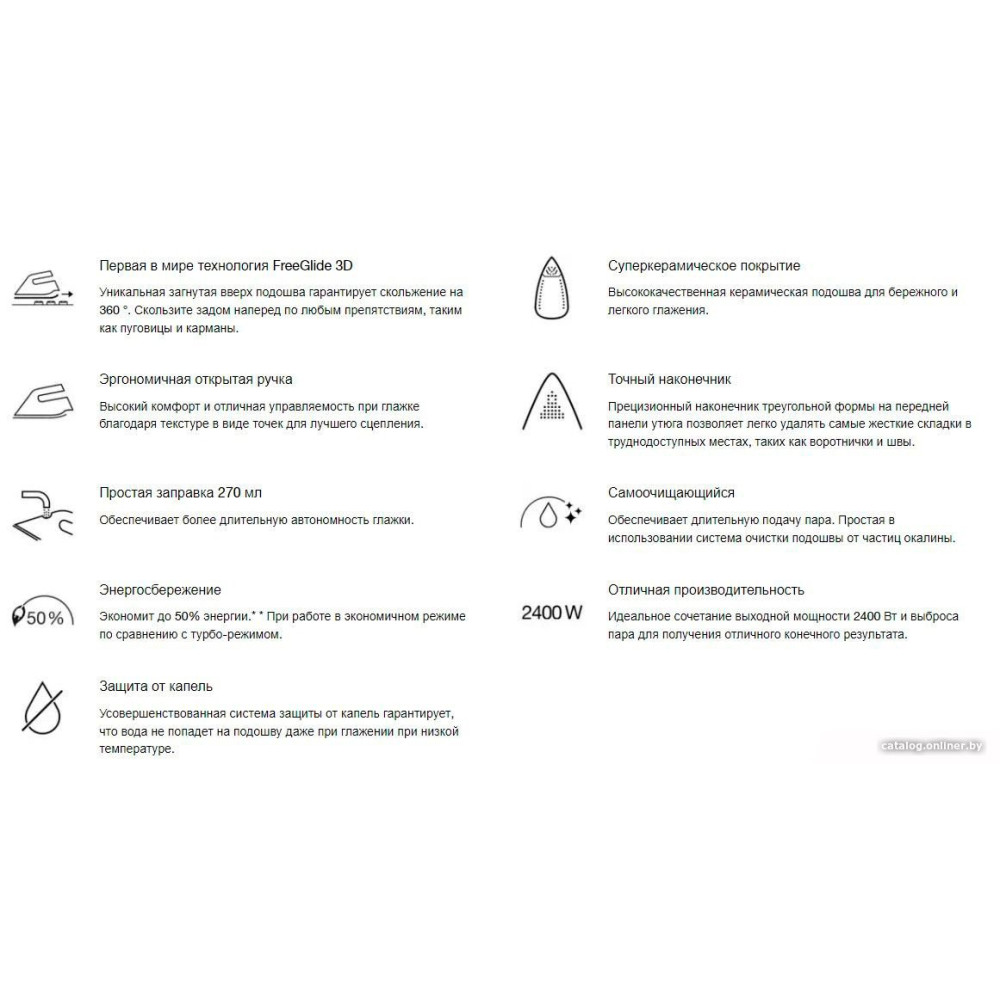 2400 Вт, с пароувлажнением, подошва FreeGlide 3D/Super Ceramic, постоянная подача пара