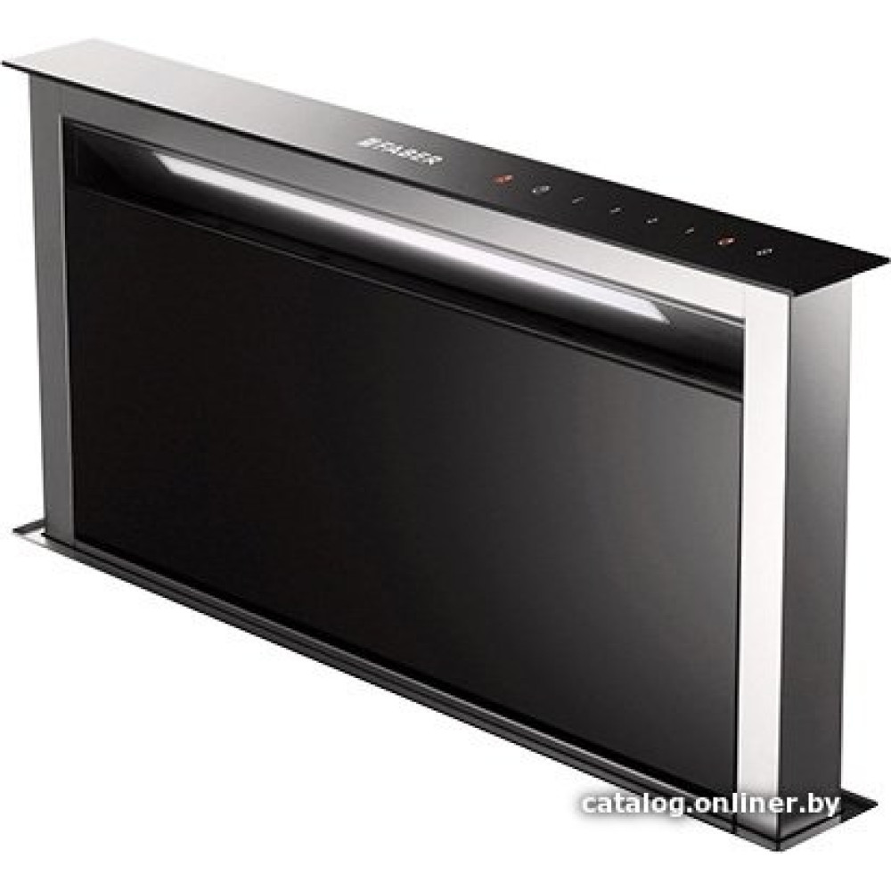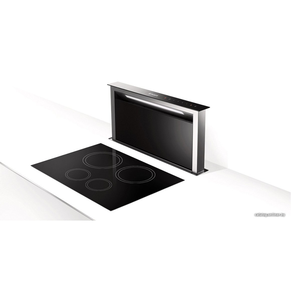 конструкция телескопическая, монтаж для встраивания в столешницу, ширина 79.4 см, управление сенсорное, производительность вытяжки 430 м³/ч, цвет черный