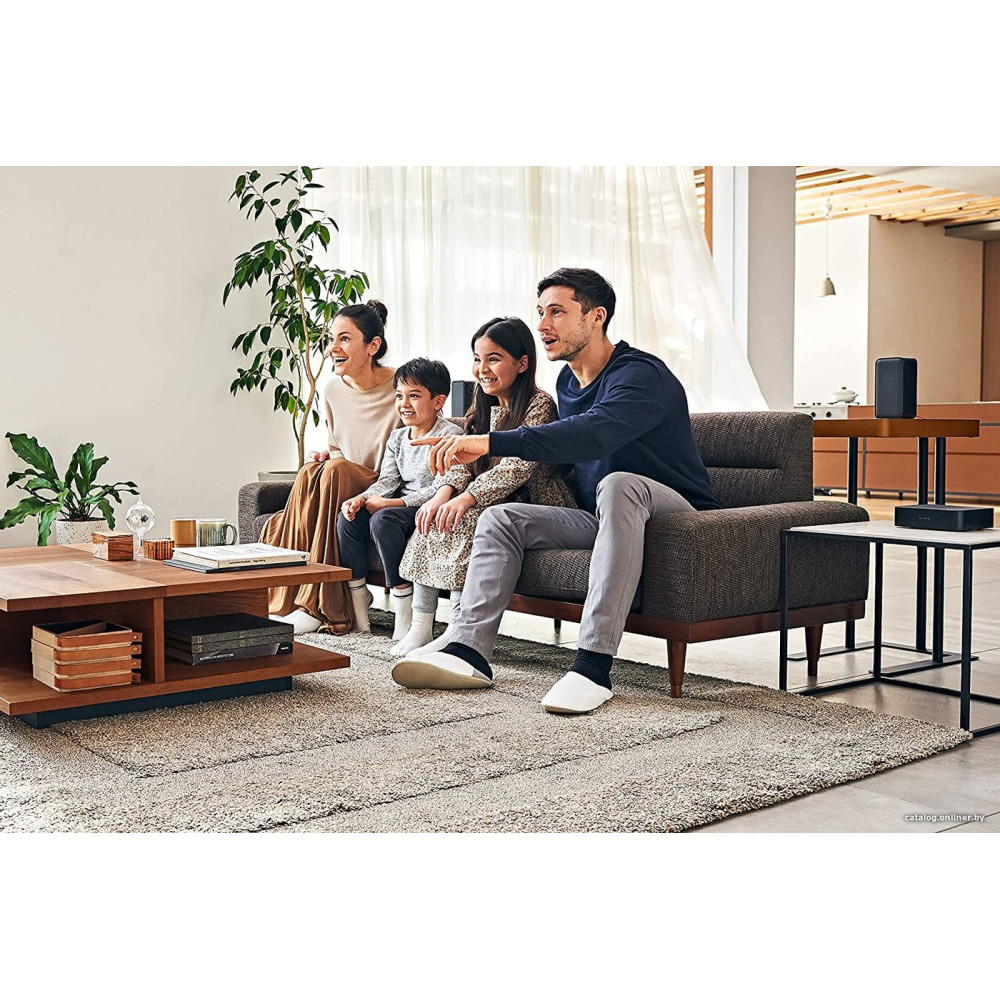 - Состав аудиосистемызвуковая панель, беспроводной модуль, проводной сабвуфер, тыловые колонки