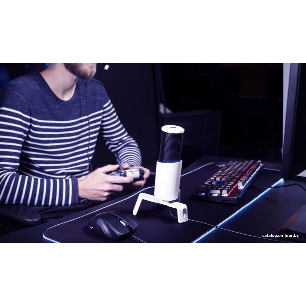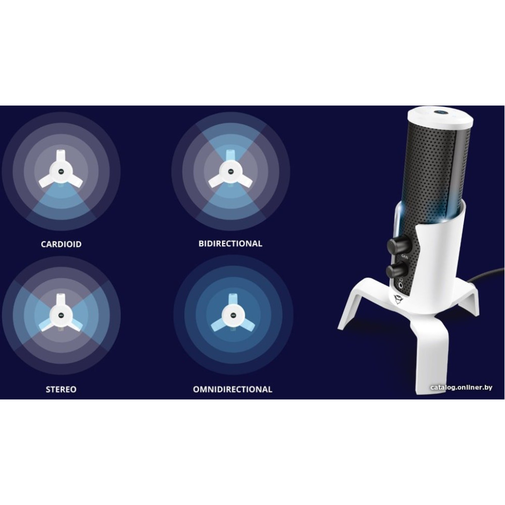 электретный (малый конденсатор), настольный, для стриминга и подкастов, кардиоидная/круговая/двойная ("восьмерка")/стерео направленность, 30-18000 Гц, разъем подключения USB Type-A, длина кабеля 1.8 м