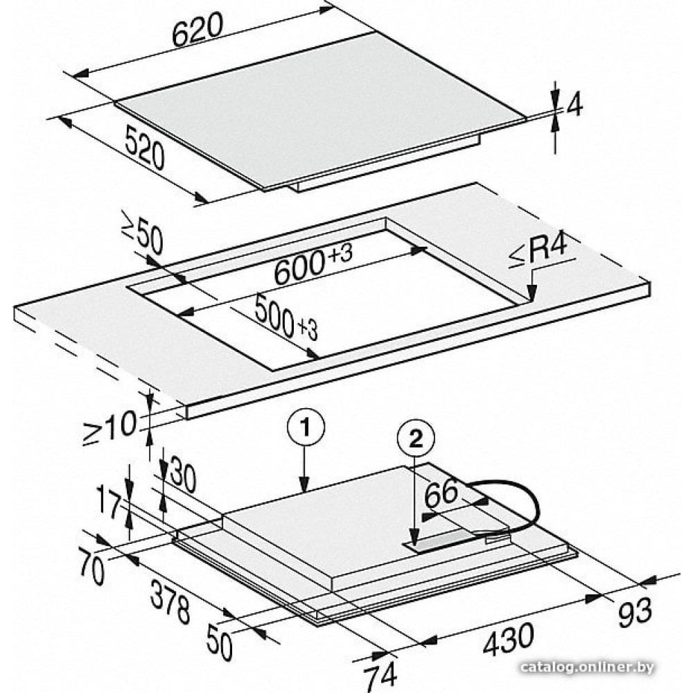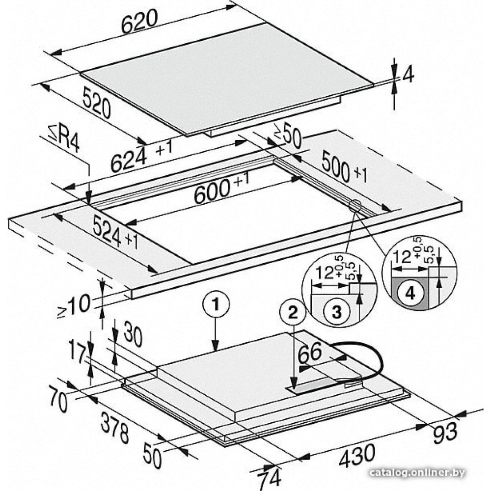 индукционная на 4 конфорки, cтеклокерамика, мощность: 7300 Вт, автоматика закипания, независимая установка, размеры (ШхГ): 62x52 см