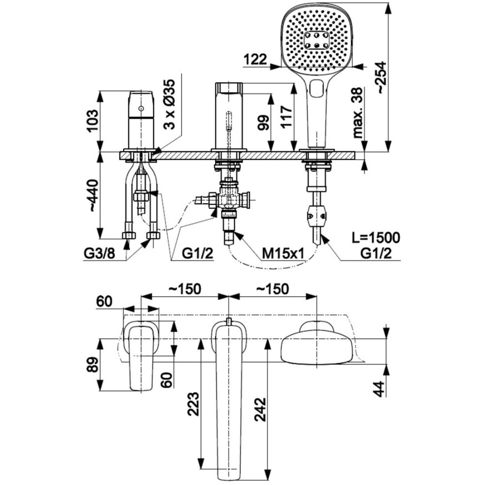 однорычажный смеситель для ванны, монтаж на ванну или полку